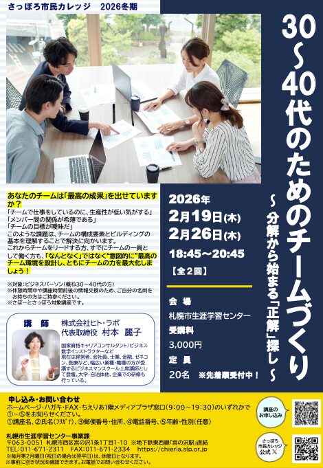 2026/02/19【ちえりあ市民カレッジ講座】チームづくり基礎